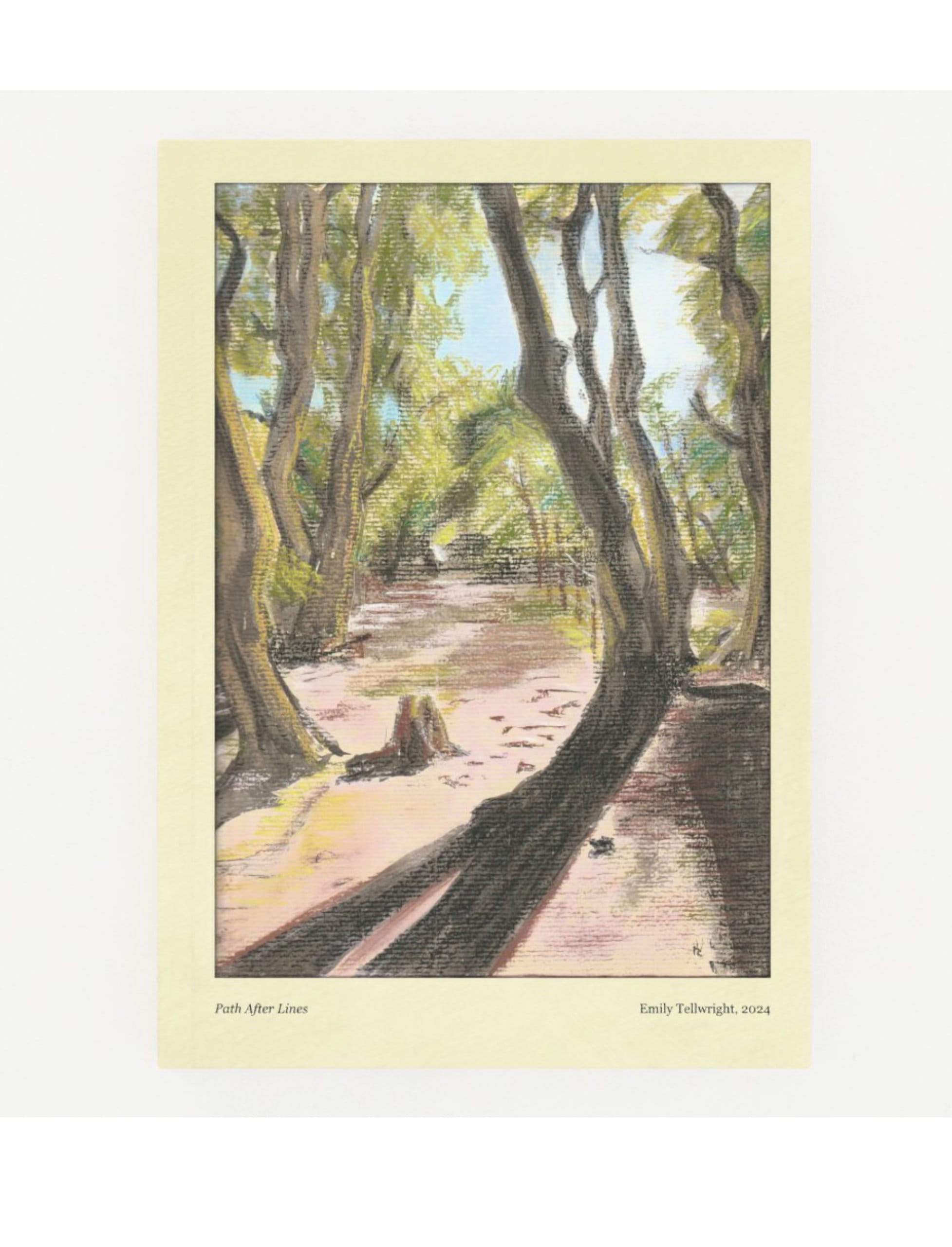 The Path After Lines hardback notebooks show a pastel drawing on Ingres paper by Emily Tellwright. The perspective of this picture draws you in, taking you along that path through the magical summer woodland. Feel the heat of the sun on the ground fading to cool in the deep shadows.